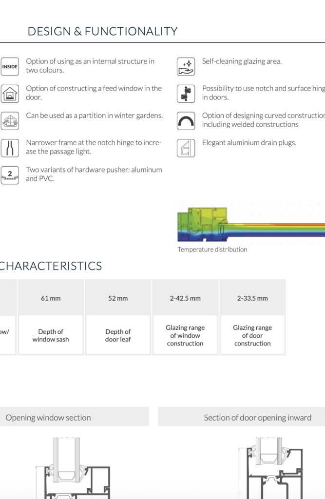 • ⦁ Integration with W62 and W72 window and door systems and F50 curtain wall system
